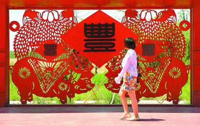 6月22日,一位市民从绣针河文化长廊前走过。 自2012年起,岚山区对绣针河实施绿化美化治理工程,通过沿河绿化带建设、景观带建设和休闲公园建设,打造绣针河文化长廊,全面展示绣针河的社会历史、民风民情、自然风光、特色物产等文化,成为居民周末休闲好去处。 (本报记者 李青 摄)