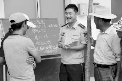 7月14日,日照臧家荒边防派出所民警史洋和渔民们一起分析辖区企业用工情况。 针对伏季休渔期间部分船民无活可干、缺少经济来源的情况,山东日照边防支队积极协调辖区用工单位,为休渔船民提供就业信息和工作岗位,既增加船民收入,又减少治安隐患。截至目前,在干警们的努力下已有138名渔民找到工作,人均月收入两千多元。