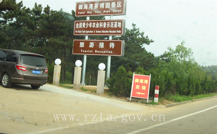 从碧海路一路向北,日照海滨国家森林公园南面,一片松树林的背后有一片郁郁葱葱的茶园,这就是御海湾茶园,穿过松林进入茶园,顿觉心旷神怡,感觉进入了世外桃源一般.这里只生产一个品牌的绿茶--御海湾原生态茶,在如此优美环境下长成的茶叶一定会别有滋味。