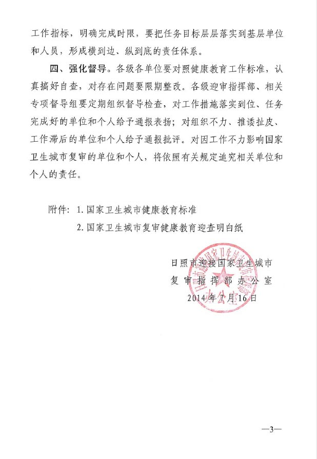 关于进一步加强国家卫生城市复审健康教育工作的通知(2014年07月22日)