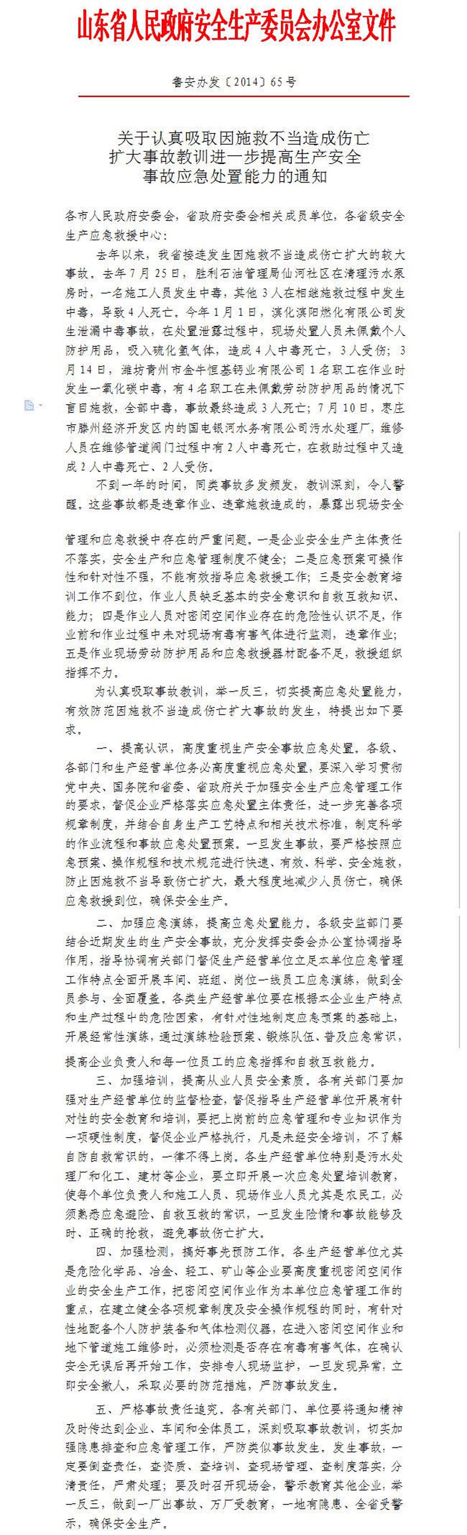 山东省人民政府安全生产委员会办公室 2014年7月23日