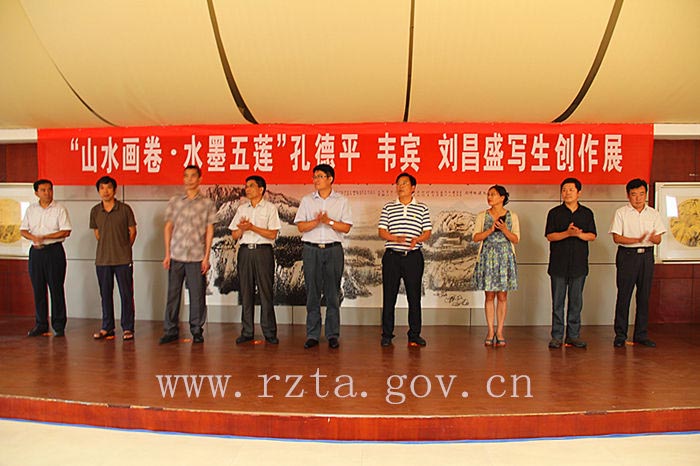 8月12日,“山水画卷 水墨五莲”孔德平、韦宾、刘昌盛写生作品展开幕式在五莲山旅游风景区举行。来自日照市书画院、东方美院、五莲县书法家协会、五莲县美术家协会的100余人参加了开幕式。