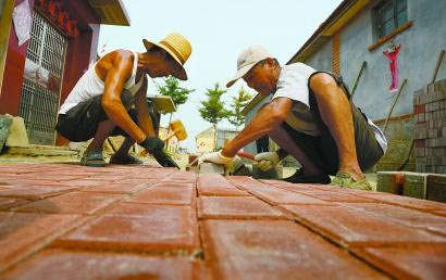 涛雒镇西灶子村近日进行住户门前路面硬化工程。 日照国际海洋城涛雒镇通过大力开展农村清洁工程,在农村能源清洁化、环境管理规范化、污水排放达标化、村庄建设园林化、废物利用循环化等“五化”上求突破,农民卫生意识明显提升,村容村貌焕然一新。