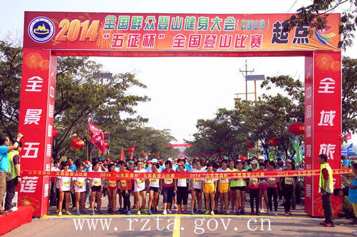 山高我为峰,健康脚下行。2014年9月20日,全国群众登山健身大会(五莲山站)活动“五征杯”全国登山比赛暨2014年五莲县全民健身运动会“山东昱森杯”登山比赛在风景秀丽的五莲山省级旅游度假区成功举行。此次登山大会的主题是“全民健身 你我同行”“美丽中国 健康你我”。来自山东、安徽、福建、河北、黑龙江、江苏、辽宁、浙江等八个省的100余名专业运动员及3000余名群众登山爱好者、自行车健骑爱好者参加了活动。