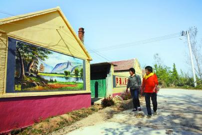 10月28日,岚山区黄墩镇芦涧村村民从文化墙边经过。该村在创建生态文明乡村建设中,既突出新村北方民居特色,又保持老村庄西南部旧貌,只做维修保护,保留原生态面貌。 黄墩镇今年计划打造11个生态文明示范村,截至9月底,全镇完成投资980万元,硬化道路4.125万平方米,栽植绿化苗木9620株,粉刷墙体4.99万平方米,安装路灯452盏。
