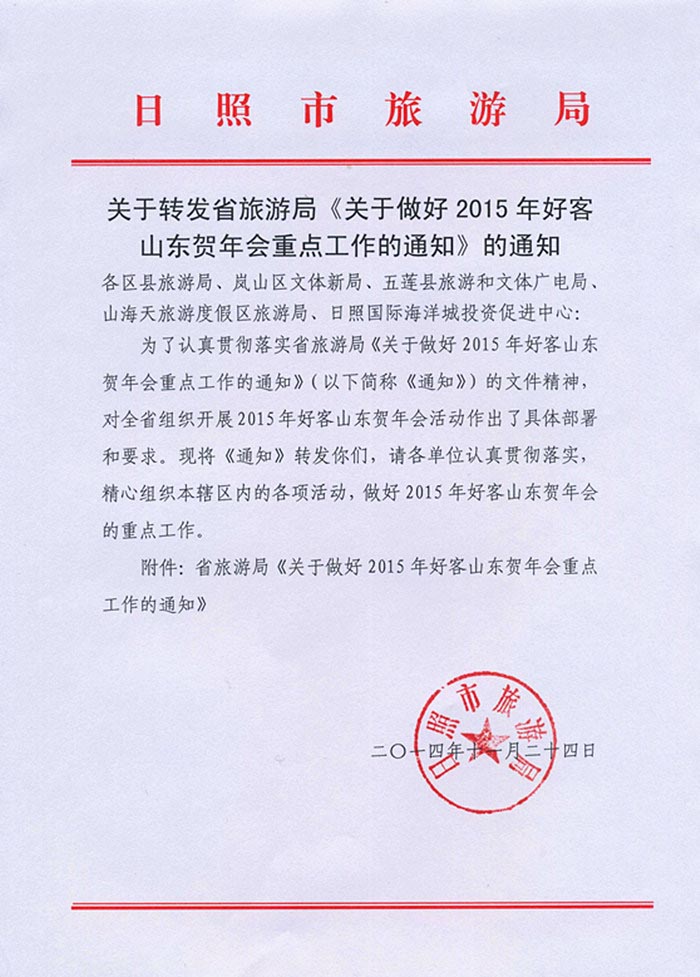 点击查看省局文件:山东省旅游局《关于做好2015年好客山东贺年会重点工作的通知》