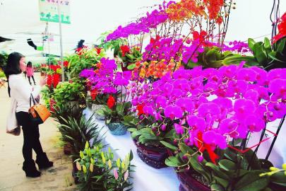 1月23日,市民在花卉市场中挑选花卉。春节临近,我市各花卉培育基地内的鲜花竞相绽放,蝴蝶兰、红掌、仙客来等多个品种的花卉将陆续上市,供应节日市场。
