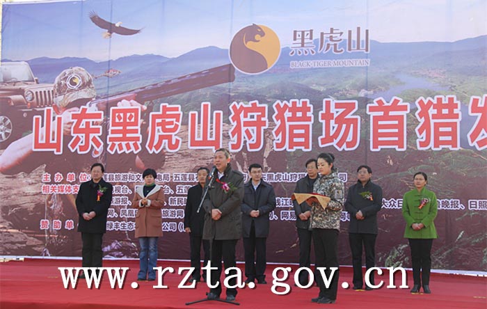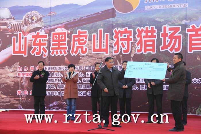 发布会在山东黑虎山狩猎场有限公司尚波总经理的致辞中拉开序幕,随后,清华大学投融中国联盟秘书长马培瑞祝辞、五莲县人民政府副县长赵荣芬致辞。“黑虎山第一枪”标主由山东曲阜铭鑫建设公司以12万元拍得,黑虎山狩猎场董事长王赛勋先生现场为标主颁发了证书。同时,将“第一枪”的拍卖款的50%(6万元)捐献给五莲慈善总会。随后标主在导猎人员的陪同下,全副武装,前往狩猎区打响了黑虎山狩猎场“第一枪”,体验“会挽雕弓如满月,西北望,射天狼”的壮志豪情。