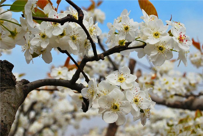 4月17日,五莲县叩官镇盘龙河畔丰水梨省级精品采摘园里的梨花争相怒放。满园的梨花清香扑鼻而来,沁人心脾,白花花的梨花挂满枝头,把园区点缀的娇艳妩媚。百亩梨花齐绽放,成为盘龙河畔一道亮丽夺目的风景。