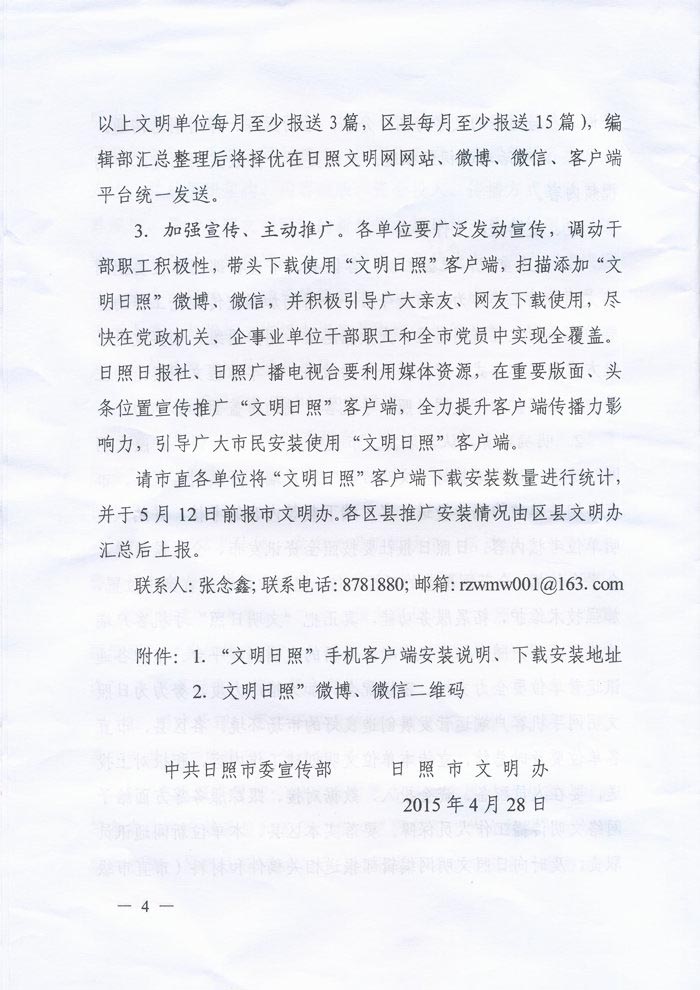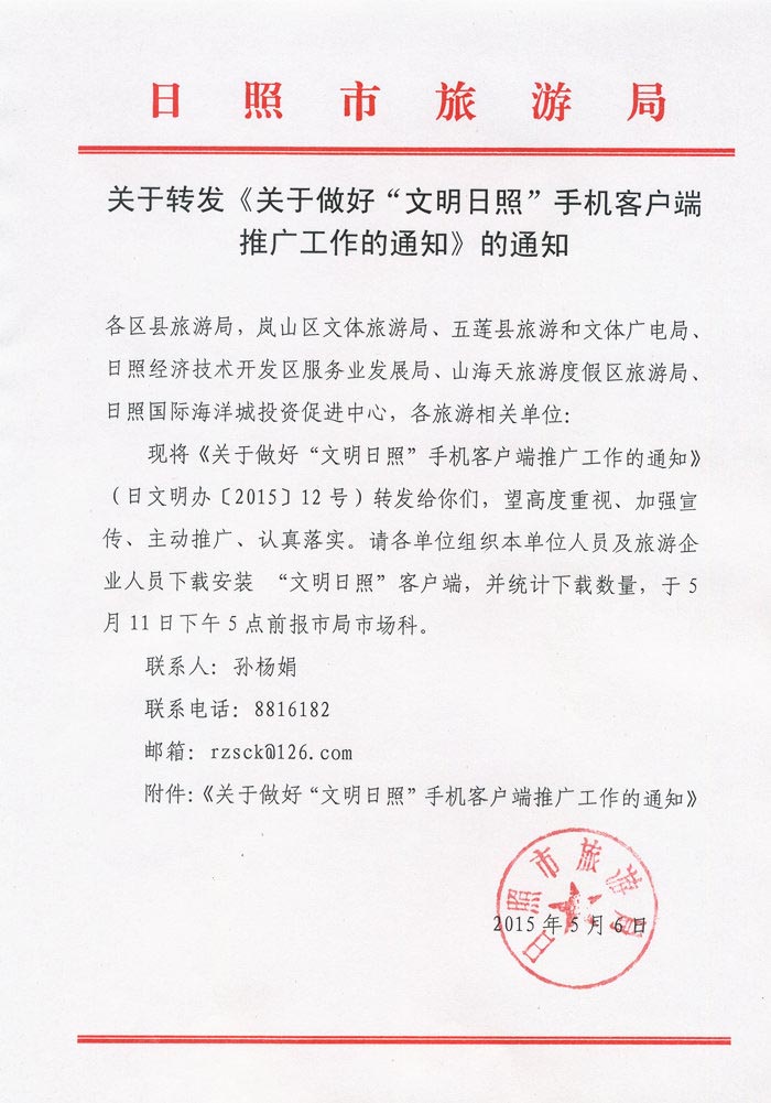 关于转发《关于做好“文明日照”手机客户端推广工作的通知》的通知(2015年05月06日)
