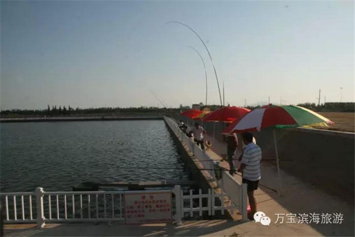 垂钓园是日照沿海地区面积最大、养殖品种最多、服务设施最全、建设规划标准最高的垂钓园,景区垂钓园面积60亩 水深约2米,池中养殖鲈鱼、黑鲷等十几个品种,且规格较大,垂钓园四周安装有安全护栏和警示牌,保证安全,工作人员会为您提供周到的服务,为游客讲解垂钓技巧,提供技术指导,让您乘兴而来满意而归。