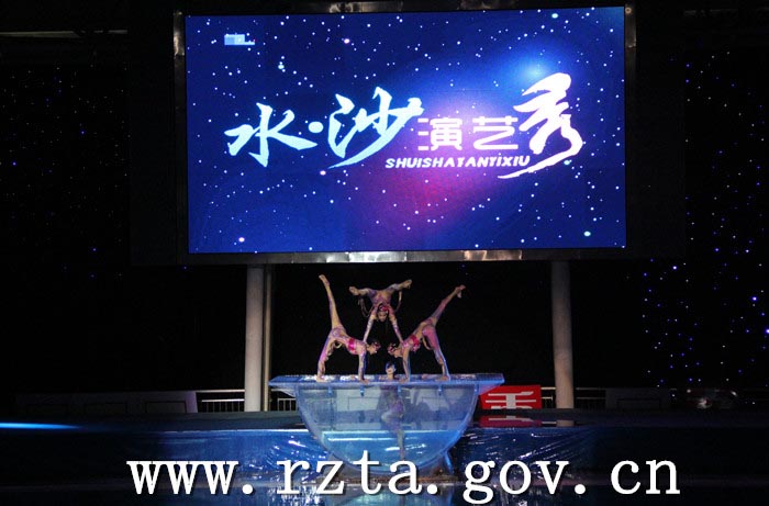 零距离体验日照金沙与水的艺术魅力,沙文化旅游演出体验。23日下午,“2015日照大型水·沙演艺秀”在日照游泳馆开幕,日照市旅游局副局长赵志超出席开幕式,并与游客共同观看水·沙演艺秀首场演出。首秀演出还吸引了日照市六十余家旅行社前来洽谈合作事宜。