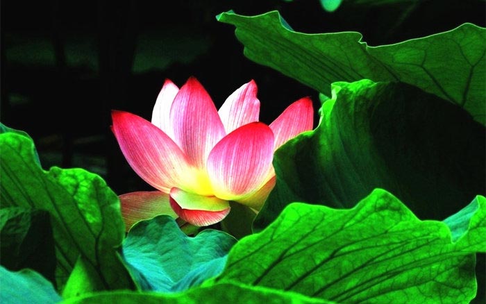 宁静的夏日里,荷花伸开那婀娜多姿的枝叶,捧出白色的、粉色的、紫色的荷花。荷叶浮在水面,滴滴晶莹的水珠随风滚动。