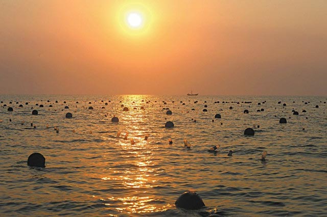 时下,山海天旅游度假区两城街道兴渔渔业公司首批试养的300多亩龙须菜陆续进入收获季节,预计亩产3000斤左右。 这批龙须菜是今年7月初从福建引进的,这次试养成功,标志日照地区的海域环境可以满足龙须菜的生长要求,对丰富我市海水养殖品种、优化当地海洋养殖结构、增加海水养殖效益具有重要意义。