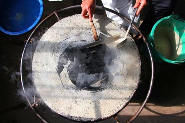 它以红薯面、小麦面粉、玉米面为原料,搅成浓糊状,上热鏊摊烙而成。饼薄如纸,色调微黄,质细香甜,柔软可口,营养丰富,尤其是以小麦为原料制作的煎饼,配以鲜嫩豆腐和辣椒,更是美味可口。在台湾出版的《山东文献》上记载,黄鲫子鱼卷煎饼,为日照的食品之一绝,久食不厌。它的特点是食用方便,便于保存。