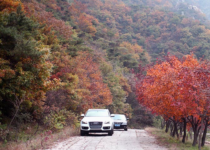 深秋的五莲山 ,空气清新,气温舒适,非常适宜登高望远。漫山秋叶,在蓝天白云的映衬下,更是绚烂多彩。落满秋叶的山道,犹如铺上了一片金红的地毯。