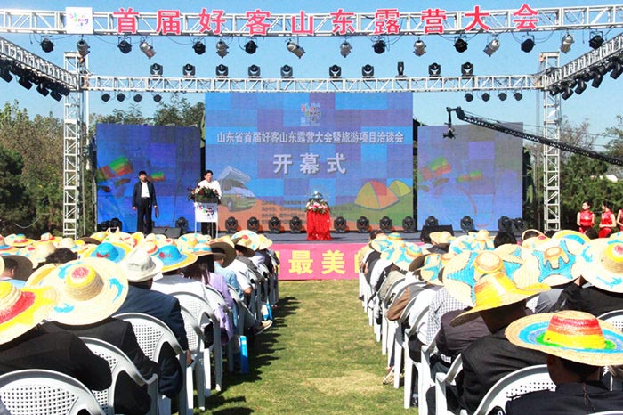 10月9日,首届好客山东露营大会暨旅游项目洽谈会在山海天蓝海1号露营公园举办,国家旅游车船协会、山东省旅游局、日照市政府、日照市旅游局、山海天旅游度假区的领导出席了开幕式,国内露营旅游业界领军人物,国内外房车装备生产、营销、投资商,各大媒体记者等参加了开幕式。