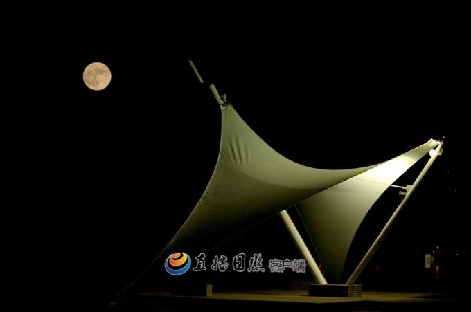 雾霾散去 日照现“超级月亮”(2015年10月28日)