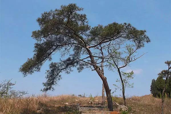 这棵苍翠的马尾松象一个孤独的舞者定格在秋风中,在期待什么呢?(莒县旅游)