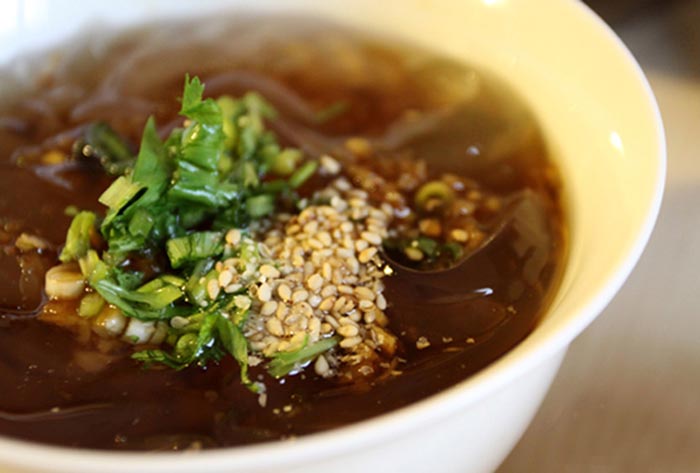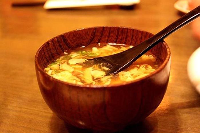 酸辣乌蛋汤,用鲜乌鱼片、特制醋、清汤制成,不仅口味上感觉酸辣鲜美,而且还具有利胃的功效。