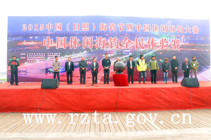 11月11日上午,2015中国(日照)海钓节暨中国休闲海钓大赛中国休闲海钓全民体验赛启动仪式在日照市水上运动基地太阳广场举行。中国休闲垂钓协会会长齐景发,山东省海洋与渔业厅王熙杰,中国钓鱼运动协会宣传委员会主任曹辉,中国休闲垂钓协会海钓分会会长纪杰,山东省旅游行业协会副会长丁再献等出席本次启动仪式。