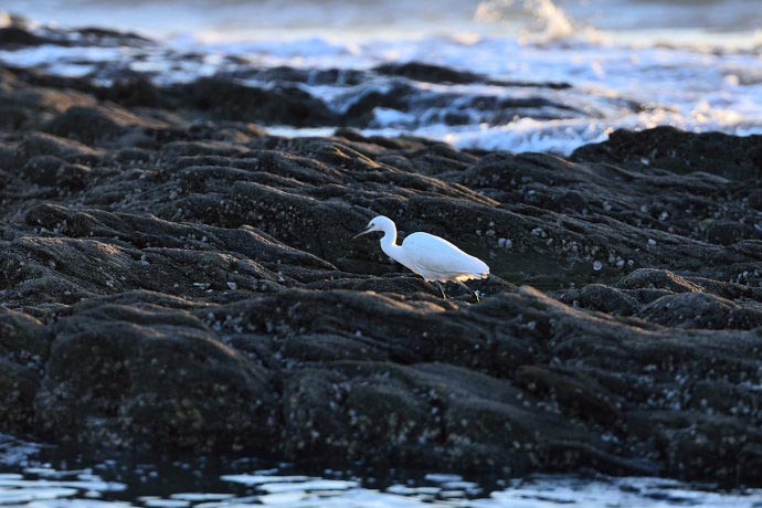 跟随孩子的视线会发现在礁石间有许多参差不齐的小水洼,他们用他们与生俱来的童真而又好奇地目光注视着水洼里形形色色的小海洋生物,这里属小螃蟹最引人入胜。
