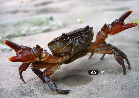 虽然它有着八条长了钩子的腿身上也穿着厚厚的“铠甲”,但是当它的两个黑眼睛一伸一缩的时候也是非常可爱的,虽然没有大螃蟹大,但是其威力也是不容小觑的,被钳住过两次的我深知其厉害!