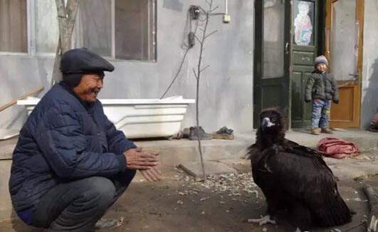 近日,莒县洛河镇小汪头村村民赵学臣去自家田里时,远远看见一个黑色的东西在动,起初他以为是小孩蹲在那里,不一会,那黑色的东西却展开翅膀飞起来,好奇心驱使他上前看个究竟。那只“巨鸟”飞了不久身子便往下沉,最后飞不动了,落到了地上。赵学臣跑到它跟前,发现这只“巨鸟”像生病了一样,没有精气神,他就赶紧把它抱起来带回了家。