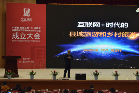 2015年12月30日,中国县域互联网+行动联盟(中国县域互联网+扶贫协作联盟)成立大会暨2015县域电商生态共建高峰论坛在桐庐县举行,同程旅游创始人、CEO吴志祥应邀出席,并现场做了《互联网+时代的县域旅游和乡村旅游》的主题演讲,介绍了国内休闲旅游市场的发展情况和同程旅游2016年在休闲旅游领域的全产业链布局。会后,同程旅游与中国县域互联网+行动联盟签署了战略合作协议。