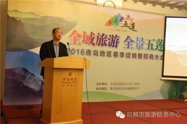 2016年3月11日、3月15日,日照市“走遍日照·玩转五莲—2016春季旅游促销暨招商推介会”分别在在青岛黄海饭店、潍坊市会议接待中心隆重举行,五莲县四个旅游强乡镇、七个A级以上景区、两家酒店以及五莲旅游护照一卡通管理办公室分别上台推介,青岛、潍坊分别有十余家知名媒体、五十余家旅游中间商、二十余家商会知名企业参与活动,反应热烈。