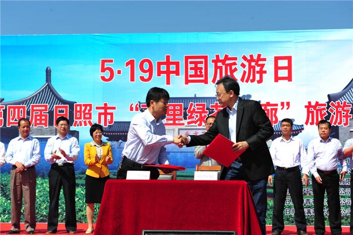 5月19日,我市2016年中国旅游日启动仪式暨第四届日照市“百里绿茶长廊”生态游推介活动在岚山区巨峰镇隆重举行。本次活动由日照市旅游局、岚山区人民政府主办,岚山区文体旅游局、巨峰镇人民政府、日照茶都商贸有限公司承办。日照市旅游局、日照市茶叶技术推广中心、岚山区人民政府、山东理工大学、岚山区文体旅游局、岚山区农业局、岚山区茶业管理办公室、新世界房地产公司、巨峰镇相关单位领导参加。部分省市新闻媒体,日照市摄影家、绿茶企业代表及长廊游客共计300余人参加了活动。