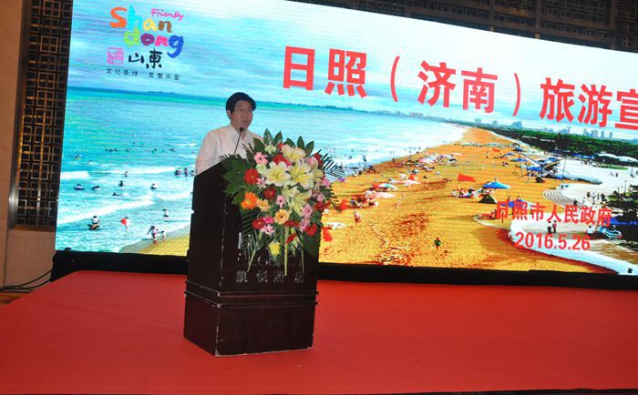 为深入贯彻落实我市“旅游富市”战略,继续巩固提升省内主体客源市场,5月26日,由市政府主办的日照(济南)旅游宣传推介会在济南成功举行。济南市旅行社代表、山东省旅游协会旅行社分会部分成员,各地驻济南商会,各旅游中间商以及省、济南市主流媒体记者等400余人参加了会议。副市长杨留星出席推介会并致辞。