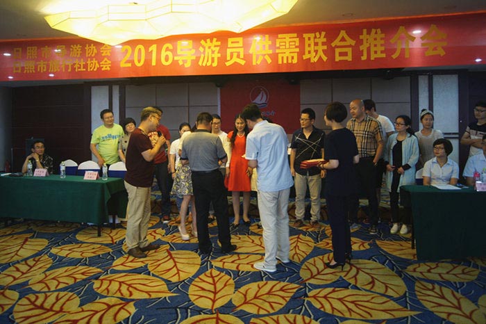 进入6月中旬,日照旅游旺季大幕即将拉开,为积极响应我市“旅游富市”战略,帮助协会会员提供更多的就业机会,更好地为旅行社服务,6月17日下午,日照市导游协会联合日照市旅行社协会举办了2016导游员供需联合推介会。日照市旅行社协会会长张栋梁、日照市导游协会会长张山华出席会议,日照市20家旅行社负责人、日照市导游协会全体会员等共200余名旅游业界精英参加了推介会。