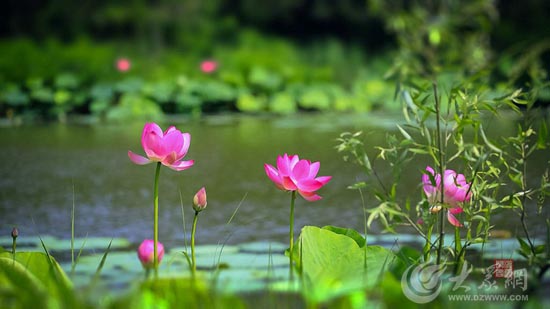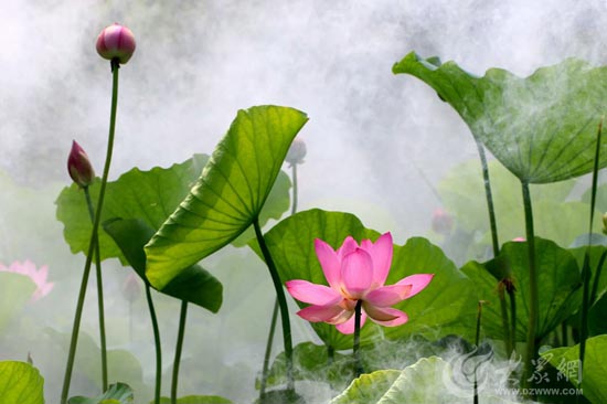 夏雨荷韵 (李冰 摄) 一段荷塘 (李冰 摄) 小荷尖尖 (李冰 摄) 荷垂碧影 (李冰 摄) 荷花带雨 (李冰 摄) 梦幻荷池 (李冰 摄) 烟笼风荷 (赵新 摄) 荷香氤氲雾来绕 (赵新 摄) “接天莲叶无穷碧,映日荷花别样红”,阵雨过后,不仅为日照森林公园带来清凉,河畔的荷花迎着雨丝摇曳,雨滴在翠绿的叶面跳跃,粉红色的花瓣在绿叶的环抱中更显娇嫩。 森林公园荷花分布很广,沿着河畔一直绵延几公里,非常壮观。现在是观赏荷花最好的时候,建议大家每天上午去,去晚了花朵就闭合了。 临近周末,在森林公园,不少市民漫步在栈道上欣赏夏日荷塘景致。