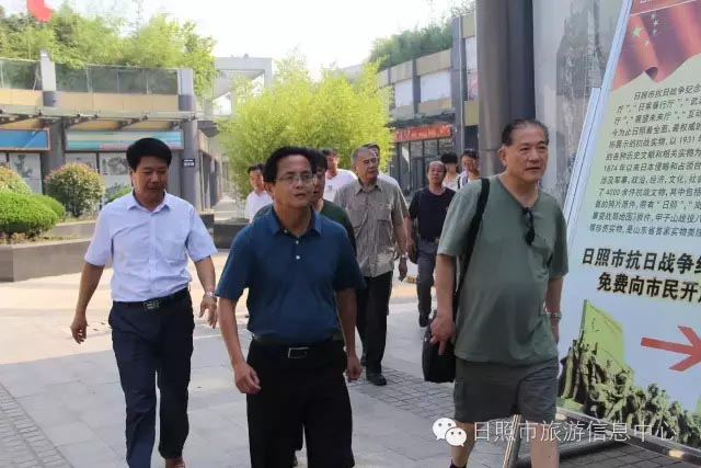 7月24日下午,革命家朱德元帅外孙刘康同志及其夫人左焕、张治中将军之孙张皓霆同志及其夫人陈金秀、黎玉之子黎小弟同志、牟宜之子牟广丰同志、陈昌之子陈龙狮同志、央视记者王旭东来到日照市抗日战争纪念馆考察。日照市旅游发展委员会副主任禚磊、日照市委党史研究室副主任尹德满陪同。日照市抗日战争纪念馆馆长刘军华做全程讲解。