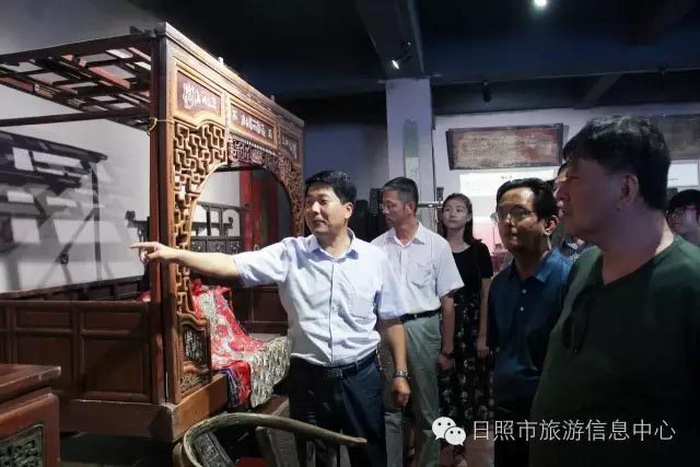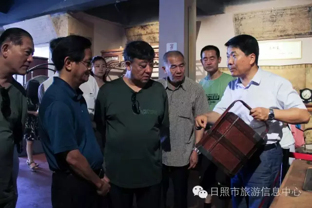 7月24日下午,革命家朱德元帅外孙刘康同志及其夫人左焕、张治中将军之孙张皓霆同志及其夫人陈金秀、黎玉之子黎小弟同志、牟宜之子牟广丰同志、陈昌之子陈龙狮同志、央视记者王旭东来到日照市抗日战争纪念馆考察。日照市旅游发展委员会副主任禚磊、日照市委党史研究室副主任尹德满陪同。日照市抗日战争纪念馆馆长刘军华做全程讲解。 刘馆长对到访的贵宾详细介绍馆内收藏品 刘馆长与到访来宾敲响状元锣,共同祝愿美好生活。 革命家后代对抗日战争纪念馆的红色教育给予肯定,并表述了自己独到的见解,提出了宝贵建议。 夏令营的小朋友们也在馆内参观 日照市抗日战争纪念馆内陈放的部分收藏品 来宾合影