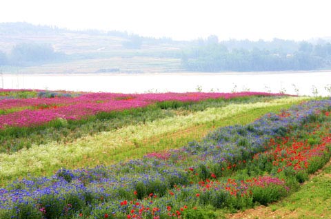 花海是由一个品中的花种植而成,因其面积广大,花开时节,犹如置身一片花的海洋,令人心旷神怡,流连忘返。