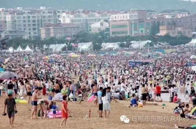 日照海滨:人从从众众众的海水浴场