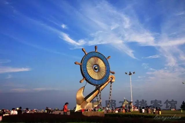 万平口生态广场的雕塑:舵轮与锚