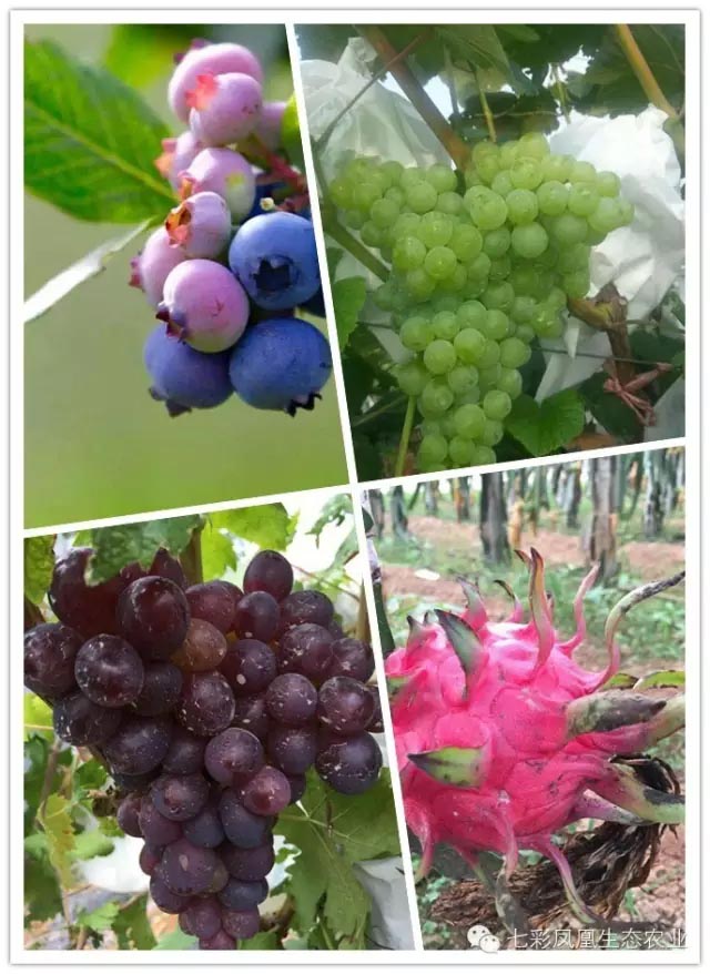 七彩凤凰是离城最近、离海最近的观光生态园,保留了最原生态样貌,并斥巨资引进蓝莓50亩,葡萄200余亩30多个品种。同时,园内栽植其他各类果树,如樱桃、高钙果、猕猴桃、五月蜜等50余种全年鲜果不断,一年四季都可以在园内体验采摘的乐趣。