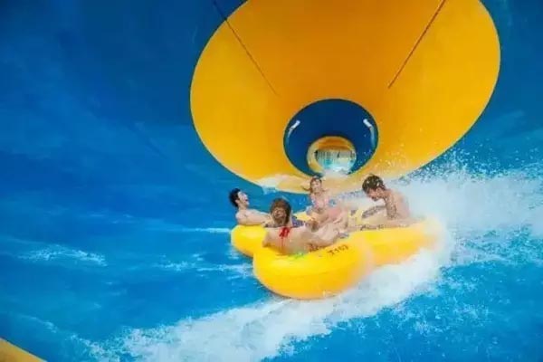多种颜色组合成的彩虹滑道,让你从高空俯冲而下,满眼的缤纷,尽情地感受“从外星回归地球”吧!