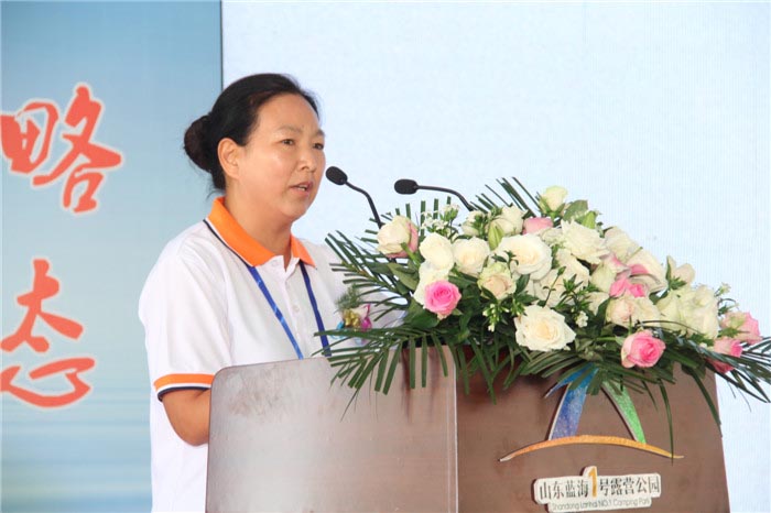 全国休闲标准化技术委员会主任委员张灵光为山东蓝海一号露营公园颁发“国家标准试点试验基地”牌匾