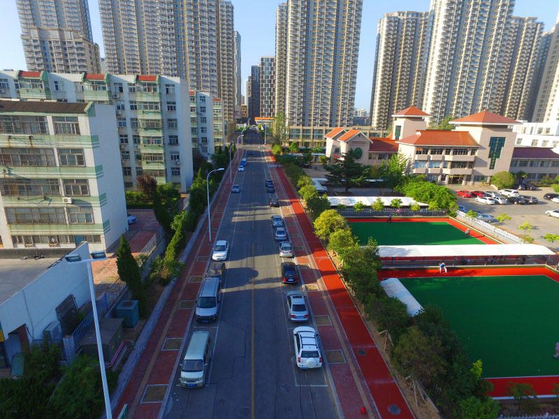 完成改造的胶南路,东侧是老年干部活动中心(日照市住建局)