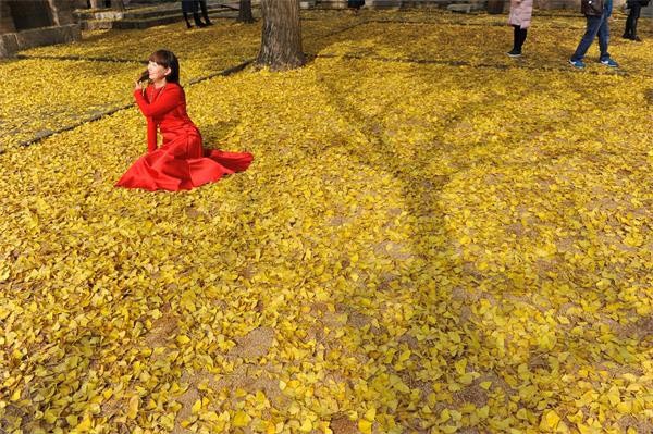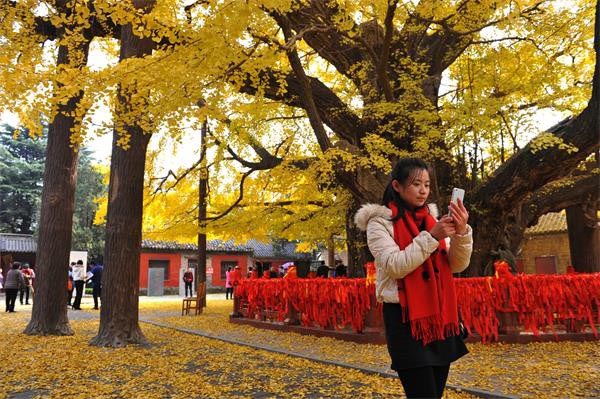 山东日照:古银杏树身穿“黄袍”盛装迎客(2016年11月10日)