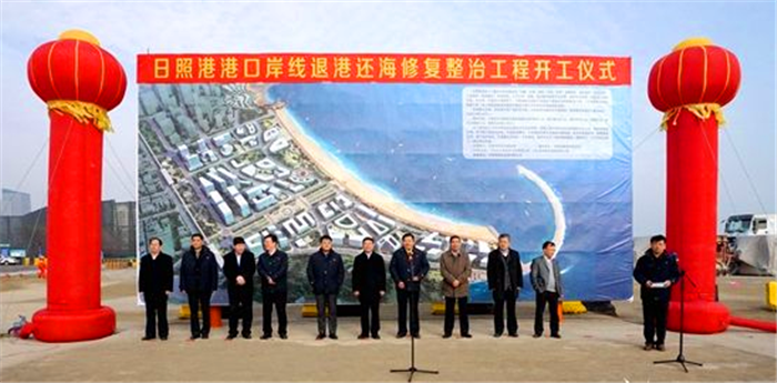 全国首个港口工业岸线退港还海、生态修复项目日 “月亮湾工程”昨日在日照正式开工建设。按照规划,日照港将石臼港区煤码头全部改移至远离城区的南作业区,实现“东煤南移”,腾出的1630米自然海岸线和2000多亩用地将实施整治修复。打造美丽金沙滩的“月亮湾”,还城市一条“金腰带”。