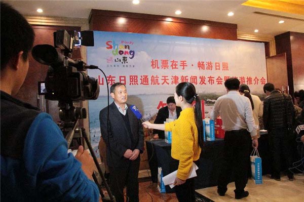 天津邂逅日照。12月2日,日照==天津通航新闻发布会暨日照旅游宣传推介会在天津举办,天津市委宣传部、天津市旅游局、天津市河西区商贸旅游局、天津航空公司和中共日照市委宣传部、日照市旅游发展委员会、日照机场建设投资有限公司有关负责人出席并致辞。天津一百二十余家旅行社、近三十家媒体参会。