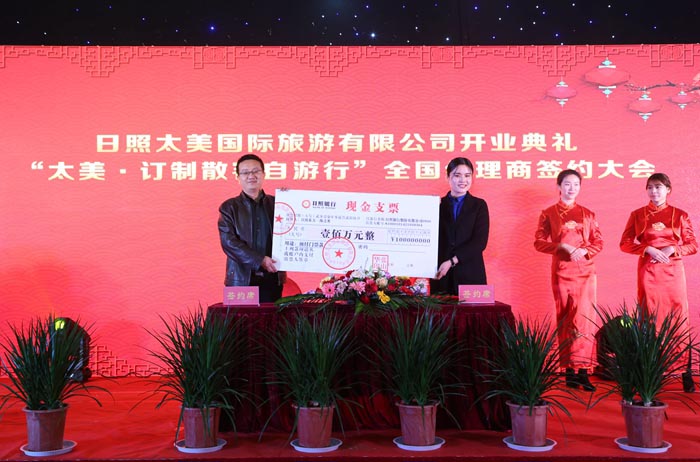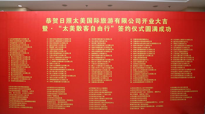 期间,太美国际旅游有限公司分别与中国风向标旅游联盟、青岛铁路国际旅行社签订战略合作协议,同时与万平口风景区、日出东方·海之秀分别签订合作协议,并现场购买了两个景点总价值200万元的景区门票。
