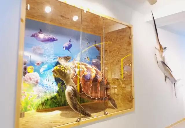 品完虾,我们来到了科普馆,别小看这科普馆,它能教给我们许多海洋的知识哦!这里面有神秘的十二生肖鱼,不仅样子千奇百怪,生活习性也千差万别。再往里走,还有神奇的鱼拓画,捉上来一条鱼,第一时间在这条鱼身上涂颜色,再把鱼印在宣纸上,用毛笔勾勒出鱼的轮廓和眼睛,这就完成了一幅美丽而又自然的鱼拓画。