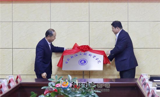 (日照市政府党组成员、总督学张传若与曲阜师范大学原校长田德全为学院揭牌)