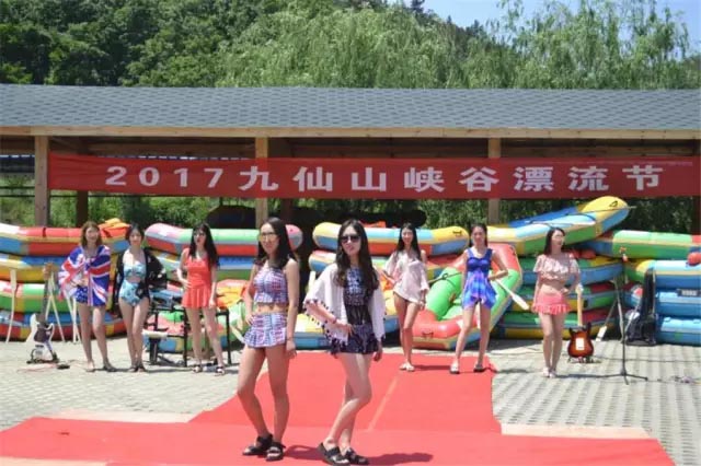 漂流节第一天! 一年一度的九仙山峡谷漂流节正式开幕啦! 漂流,是一项勇敢者的游戏! 5·28!这一天! 我们九仙山峡谷漂流基地 接待了1000余名勇敢者! 惊险与刺激的完美融合! 张狂与清凉的最佳搭配! 九仙山漂流季正式起航! 清凉走秀齐喧腾 本次活动 我们请来了八位比基尼靓妹! 上演精彩的清凉走秀!